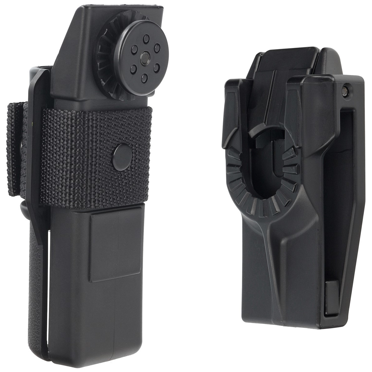 Holster - patented design allows the handle to rotate a full 360° and blocking in one of 16 items. The baton can be carried submitted or unfolded in vertical, horizontal as well as any other. The case is made of heavy-duty (heavy-duty), hardened polypropylene in black.