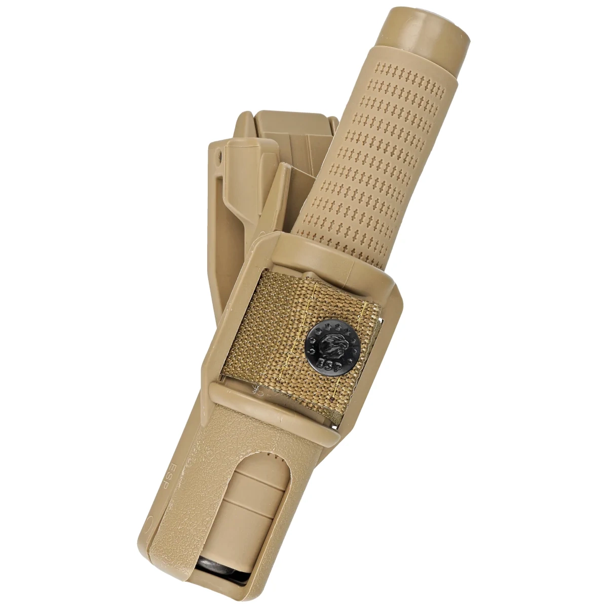 Professional 16-inch hardened expandable baton by Czech company ESP with an Ergonomic handle, featuring the Friction Loc mechanizm. Designed in a military-style version with a khaki-colored handle and holder. This compact baton is ideal for users who value low weight, discreet carry, and ease of use. Made from hardened steel, it offers exceptional durability and reliability-perfect for intensive, professional use. The set includes a professional, made of durable polymer, detachable 360° rotating holder BH-54, along with a UBC-5 mount equipped with the Quick Change System.